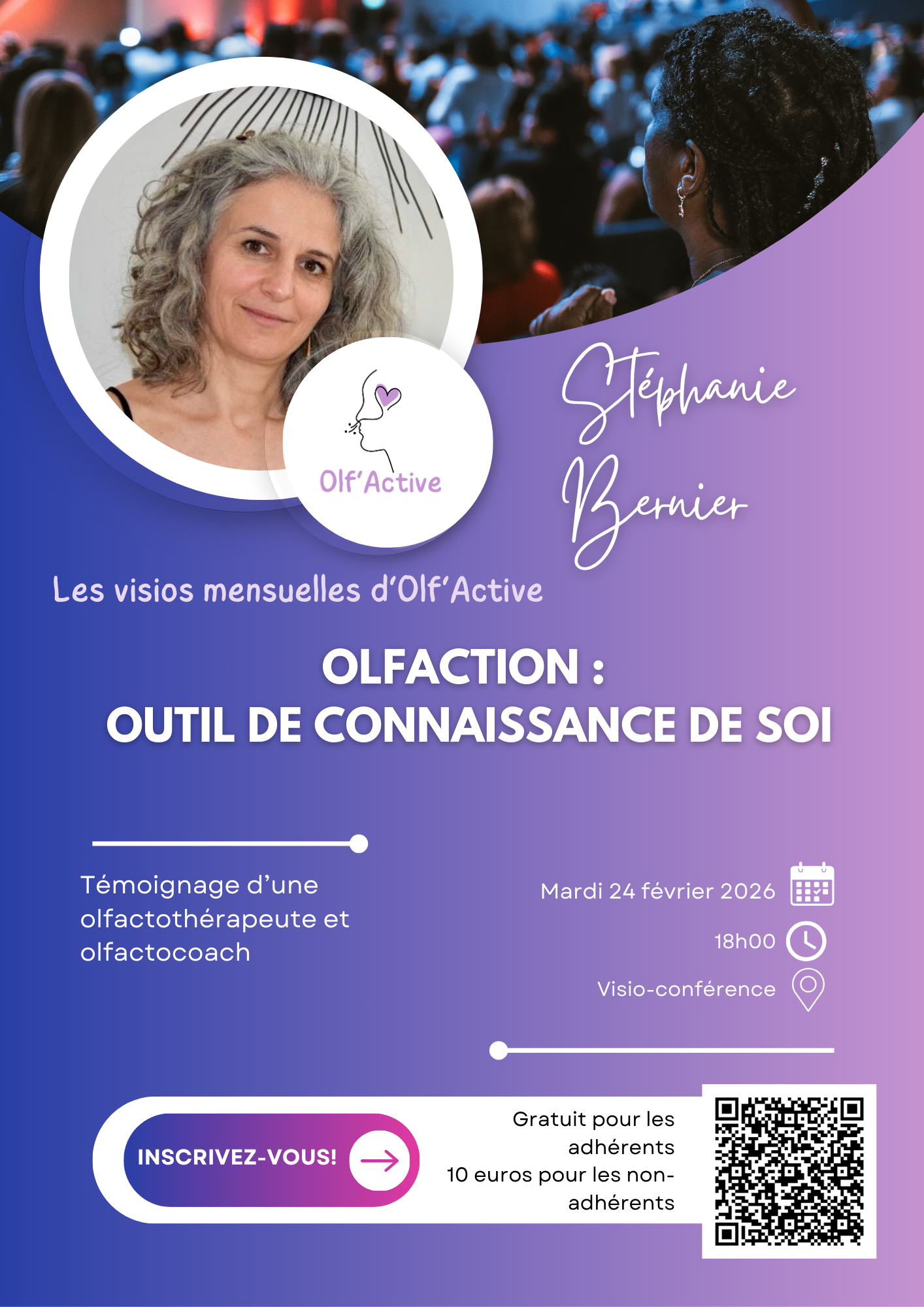 Rappel : l’adhésion à Olf’Active se fait sur année scolaire (septembre 2025 – août 2026). Vous êtes donc toujours couverts et n’avez pas besoin de réadhérer pour le moment! N’hésitez pas à relayer nos actions et événements autour de vous : c’est ainsi que la culture olfactive continue de se diffuser.